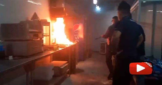 En un video compartido en redes sociales, se pudo ver cómo los trabajadores del local intentan calmar las llamas usando extintores, pero sin tener éxito. De hecho, al parecer, las llamas toman más fuerza.